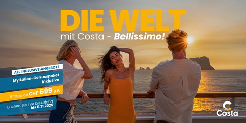 Seit über 75 Jahren steht Costa für italienisches Lebensgefühl und Gastfreundschaft. Jede Reise lädt ein, innezuhalten, den Augenblick zu geniessen und unvergessliche Momente zu erleben – an Bord wie an Land, in den schönsten Zielen weltweit.