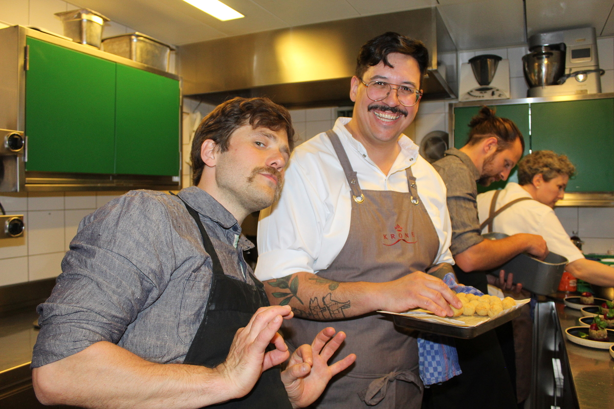 Für einen Abend lang verschmolzen die kulinarischen Handschriften zweier Regionen zu einem stimmigen Gesamterlebnis. Aus Vorarlberg reiste der mehrfach ausgezeichnete Grüne-Stern-Koch Michael Garcia-Lopez vom Restaurant Krone in Hittisau an.