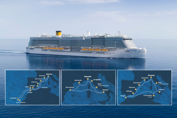 Am 13. November 2025 startet die Costa Toscana zu einer 15-tägigen Reise ab Savona bis zu den Kanarischen Inseln. Unterwegs warten mediterrane Highlights wie Barcelona, Marseille und Valencia, das andalusische Flair von Málaga und Cádiz sowie der orientalische Zauber von Tanger.