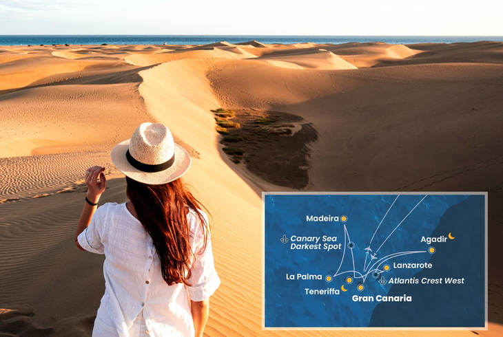 Auf dem offenen Meer, eingetaucht in die tiefste Dunkelheit des Mittelmeers, werden eure Kunden Himmel und Sterne sehen, wie nirgendwo sonst. Ein Offizier an Bord weiht sie in die Geheimnisse des Universums ein – ihr Blick reist zwischen Planeten und Sternbildern.