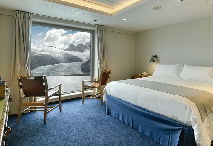 Zeichneten die «101 Besten» auch Kreuzfahrtschiffe aus, würde es die Ventus sicher ins Ranking schaffen. Meine Kabine bietet auf rund 17 Quadratmetern ein hervorragendes 2x2-Meter-Bett und ein Fenster zur Welt: Eine riesige Panorama-Scheibe macht die patagonische Landschaft zum ständigen Begleiter.