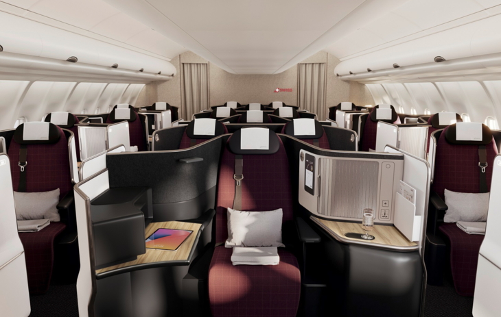 Die neuen Suiten in der First Class bieten Fluggästen absolute Privatsphäre mit verschliessbaren Schiebetüren, persönlicher geräumiger Garderobe, grossem Esstisch, Sitzheizung und -kühlung, kabellosem Lademodul sowie Bildschirmen über die gesamte Suitenbreite hinweg.