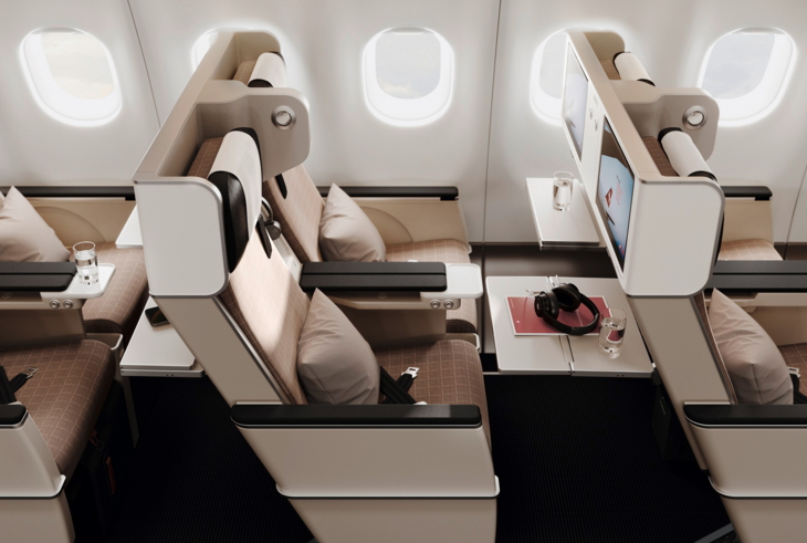 Die erneuerte Business Class ist auf unterschiedlichste Bedürfnisse ausgelegt. So gibt es neben dem neuen klassischen Business-Class-Sitz weitere verschiedene Sitz-Optionen, beispielsweise für gemeinsam Reisende. Zudem können ausgewählte Sitze mit einer Schiebetür verschlossen werden. Alle Plätze verfügen über Sitzheizung und –kühlung und ein kabelloses Lademodul. Materialien in Bordeaux und Anthrazit versprühen eine behagliche und intime Atmosphäre.