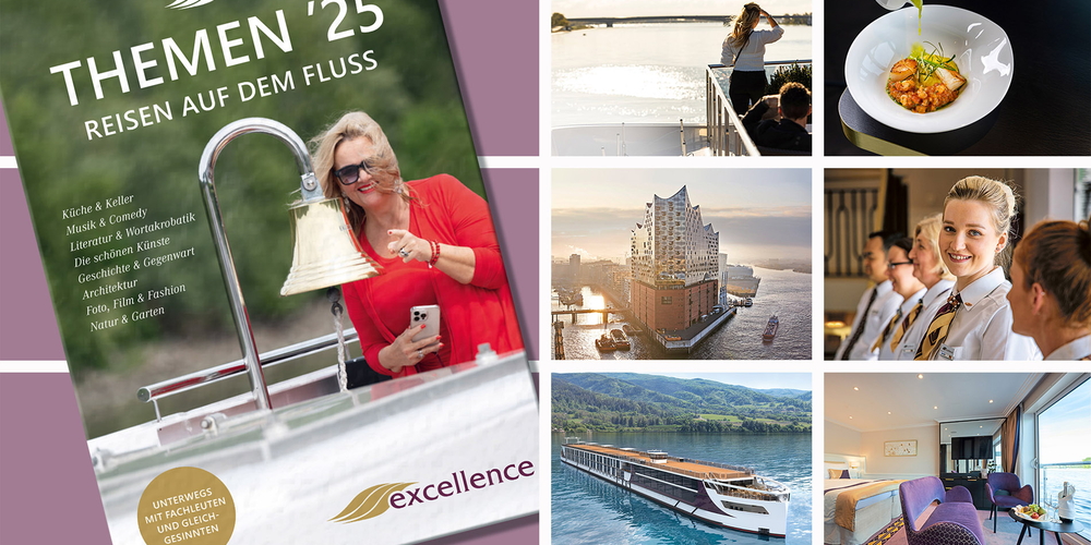 Excellence präsentiert die neuen Themenreisen '25. Das Angebot ist so vielseitig und breit wie nie. Mit über 80 Fachleute arbeitet die Reederei zusammen. Die Flussliner der Excellence-Flotte werden zur Bühne für Konzerte und Comedy. Und auf den Bühnen Europas erleben Excellence-Gäste grosse Stars live.