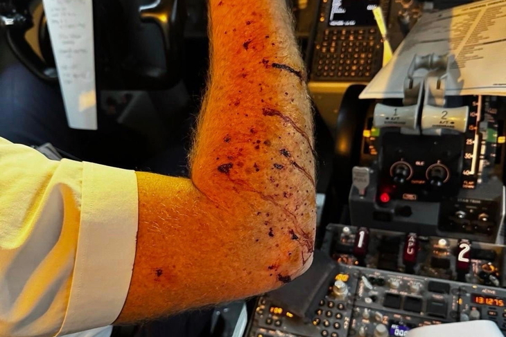 Bilder auf der Social-Media-Plattform Bluesky zeigen die zersplitterte Frontscheibe des Cockpits sowie den verletzten Arm eines Piloten. Nach Angaben von United wurde der Pilot offenbar durch umherfliegende Glassplitter am Arm verletzt, als die mehrschichtige Windschutzscheibe beschädigt wurde.
