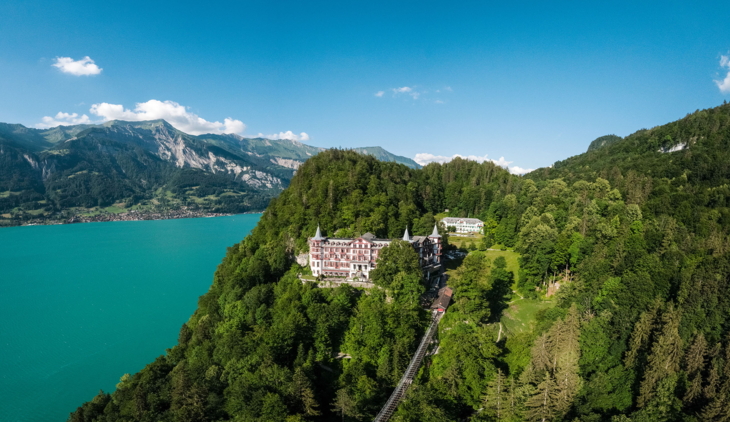 Von der Schiffsanlegestelle Giessbach am Brienzersee, Kanton Bern, führt die älteste noch funktionierende Standseilbahn der Schweiz hinauf zum Grandhotel gleichen Namens, das einst von Franz Weber vor dem Abbruch gerettet wurde. Die Standseilbahn, 345 Meter lang und mit einem Höhenunterschied von 104 Metern, wurde 1879 erbaut. www.giessbach.ch