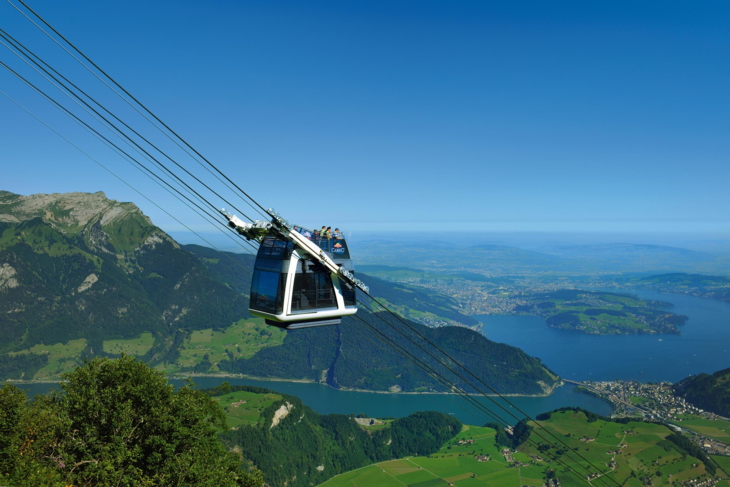 Ebenfalls zweistöckig ist die Bahn auf das knapp 1900 Meter hohe Stanserhorn in Nidwalden. Allerdings fahren die Passagiere im oberen Stockwerk oben ohne, denn es handelt sich hier um die weltweit erste Cabrio-Luftseilbahn. Vom Panoramadeck hat man eine unglaubliche Aussicht auf den Vierwaldstättersee und die Berge. www.stanserhorn.ch