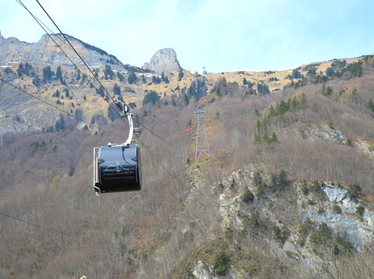 Die Staubernbahn, eröffnet 2018, verbindet Frümsen, Gemeinde Sennwald, im St. Galler Rheintal mit dem Wandergebiet Alpstein und ist die erste energetisch unabhängige Seilbahn der Welt. Die Elektrizität für den Antrieb stammt aus einer Batterie, die ihrerseits durch die bahneigene Solaranlage und durch Rückgewinnung der Bremsenergie gespeist wird. www.staubern.ch