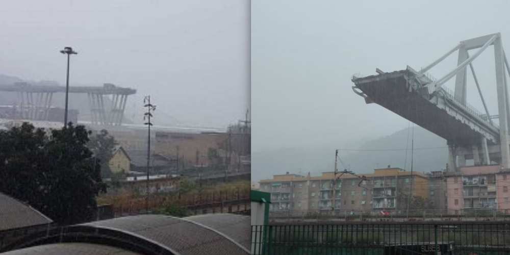 Die vierspurige Autobahnbrücke, der Ponte Morandi, wurde in den Jahren 1963 bis 1967 gebaut und führt in einer Höhe von 40 Metern über Häuser, Industriebetriebe und Gleisanlagen. Die Behörden vermuten strukturelle Schwächen beim Bau als Ursache des Unglücks. Eine halbe Stunde vor dem Zusammenbruch der Brücke, um 11.26 Uhr, soll bei starkem Regen ein Blitz der Stärke 7900 Ampere in einen Brückenpfeiler eingeschlagen haben. Die genaue Ursache ist aber noch nicht bekannt.