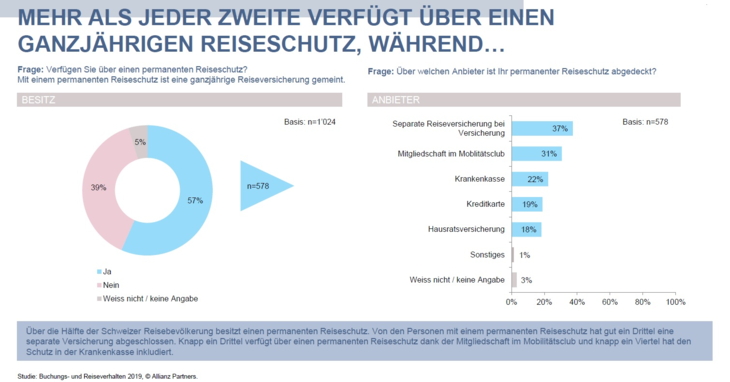 Dabei gilt es auch zu erwähnen, dass zwei von fünf Befragten keine Reiseversicherung haben. Ein fehlendes Bedürfnis oder zu geringe Wahrscheinlichkeiten die Versicherung auch wirklich zu benötigen, sind dabei die primären Beweggründe, dicht gefolgt von der Unwissenheit entsprechender Versicherungsmöglichkeiten. «Da ist der Ball bei den Versicherern - wir haben da noch Arbeit zu leisten», so Nink.