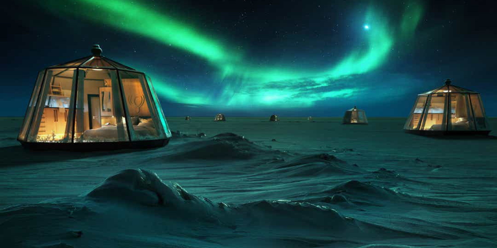 Im kommenden Winter gibt es aber am nördlichsten Punkt der Erde erstmals ein Hotel - zwar nur ein temporäres, aber immerhin. Der finnische Anbieter Luxury Action wird dann nämlich geheizte und mit einer Toilette versehene Glas-Iglus (damit man die Nordlichter sehen kann!) während dem ganzen April 2020 direkt beim Nordpol einrichten. Die Reise dorthin kann nur als Pauschalreise gebucht werden. Zum stattlichen Preis von 105'000 Dollar bzw. 95'000 Euro wird Folgendes geboten: