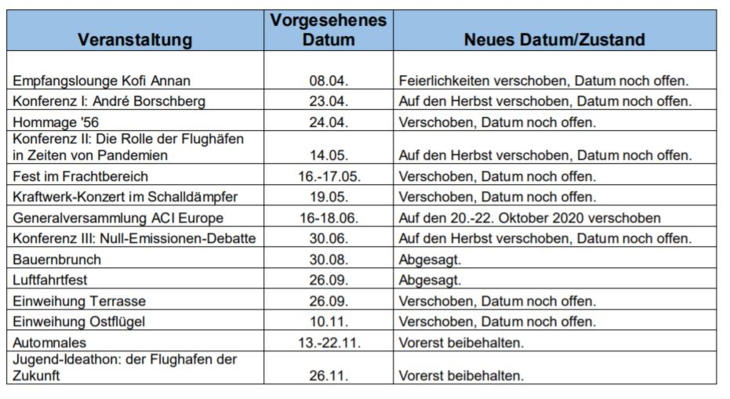 100 Jahre gibt es den Genève Aéroport schon und dieses Jubiläum sollte in diesem Jahr so richtig zelebriert werden. Zahlreiche Veranstaltungen waren geplant - darunter das Konzert der legendären Band Kraftklub, das Fest im Frachtbereich oder der Bauernbrunch. Das Coronavirus zwingt die Flughafenbetreiber nun aber, Anpassungen im Programm vorzunehmen. Es kommt zu zahlreichen Verschiebungen in den Herbst und leider auch zu einigen Absagen, wie das Unternehmen mitteilt. Das Luftfahrtfest am 26. September und der Bauernbrunch am 30. August sind abgesagt. Für das Kraftklub-Konzert wird nach einem Verschiebedatum gesucht. Für die Konferenzen, die Zeremonie zur Namensänderung des Espace Kofi Annan in der Empfangslounge sowie das Fest zu Ehren des 1956 unterzeichneten Abkommens zwischen Frankreich und der Schweiz wird ebenfalls nach einem neuen Datum im Herbst gesucht. Die Informationen zu abgesagten oder verschobenen Veranstaltungen werden regelmässig auf der Website des Flughafens aktualisiert.