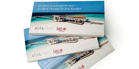 Der Schweizer Reiseveranstalter Let's go Tours verschickt diese Woche eine besondere Tafel Schokolade: Gemeinsam mit dem Alila Kothaifaru Maldives Resort wird 100 ausgewählten Reisbüros die Woche versüsst.