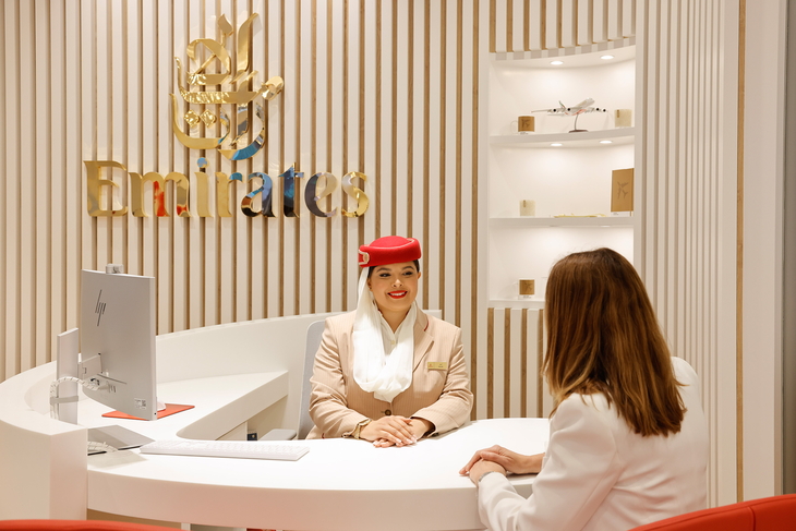 Drei Service-Counter stehen für die persönliche Beratung zur Verfügung – betreut von geschultem Emirates-Personal, das Unterstützung bei Flugbuchungen bietet und über neue Routen, Angebote und Services informiert.