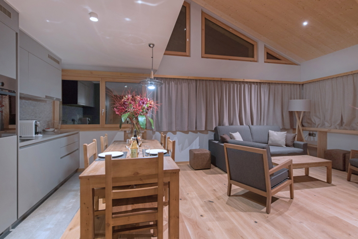 Es macht sich ein gediegenes Wohngefühl breit und der Blick aus den Fenstern geht ins Val d’Anniviers und auf die imposante Bergkette.
