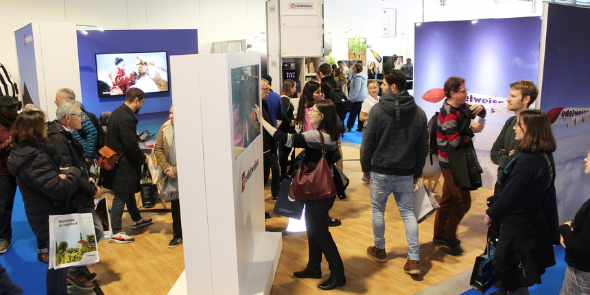 Nur knapp ein Dutzend Schweizer Regionen, Hotels oder Bergbahnen waren unter den 500 Fespo-Ausstellern zu finden. Die die da waren, zeigen sich happy über den regen Besucherkontakt.