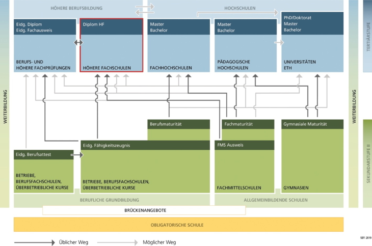 Gut zu wissen: Alle genannten Schulen unterliegen dem gemeinsamen Rahmenlehrplan des SBFI (Staatssekretariat für Bildung, Forschung und Innovation). Dessen Fundament bildet eine praxisnahe Ausbildung: Die Absolventinnen und Absolventen sind echte «Allrounder», mit einer Ausbildung in der Breite wie in der Tiefe. Das erhöht deren «Employability» und macht sie für Arbeitgeber so attraktiv. Laut einer vom bekannten Schweizer Ökonomen Rudolf Strahm publizierten Statistik gibt es, gemessen am Abschluss, in der Schweiz nirgends eine so tiefe Arbeitslosenquote wie bei Abgängern von Höheren Fachschulen.