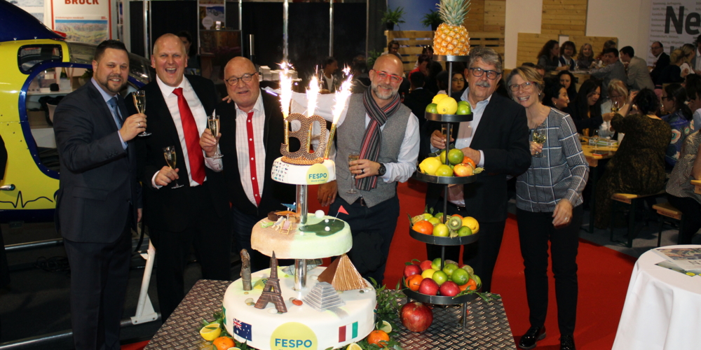 Ebenfalls schon eine Tradition ist der Aussteller-Apero am Freitagabend im Blick-Café neben Halle 4. Nach Fespo-Schluss trafen sich dort zahlreiche Aussteller zu Wein, Bier und Weisswürsten und hörten dabei auch eine kurze Ansprache von Fespo-Messeleiter Stephan Amstad. Aus Anlass des 30-Jahr-Jubiläums der Fespo waren auch frühere Fespo-Macher mit dabei - etwa Willi Gyger (Wigra), welcher die Fespo seinerzeit ins Leben rief, oder der frühere Fespo-Direktor Daniel Wyss. Zur Überraschung von Amstad wurde dann eine übergrosse Torte mit Feuerwerks-Deko herangefahren und von allen anwesenden Ausstellern gab es Applaus und ein Prosit auf viele weitere Fespo-Jahre.