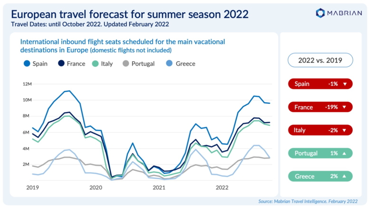 Die Pandemiewelle ebbt spürbar ab, viele Länder verkünden Lockerungen. Erwartet wird dadurch eine erhöhte touristische Nachfrage. Diese hat aber bereits vor den Lockerungen eingesetzt, behauptet zumindest Mabrian Technologies, ein weltweit führender Anbieter von Datenanalysen und Tourismusinformationen mit Sitz in Barcelona. Mabrian hat eine Studie darüber veröffentlicht, wie sich der Anstieg der Impfquoten durch Omikron und die Zahl der Menschen, die nach einer Infektion vorübergehend immun sind, positiv auf die Ankünfte in den wichtigsten europäischen Ferienzielen in diesem Sommer auswirkt.