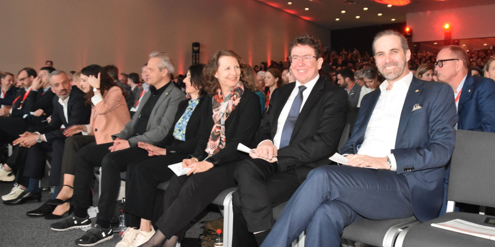 Doch die Show stahl ihm ein Weltstar. War die Schweizer Tourismusbranche beim letztjährigen Ferientag in Arosa schon begeistert, als ST-Werbepartner Roger Federer sich nur schon live per Whatsapp in den Jahreskongress einwählte, toppte der Tennis-Superstar dies in diesem Jahr. Nachdem der neue Federer-Werbefilm an der Seite von Trevor Noah über die 20 Meter-LED-Wand lief, kündigte Martin Nydegger Besuch an. Die Türe ging auf und Roger Federer kam leibhaftig und mit grossem Smile rein. Die Touristikerinnen und Touristiker flippten aus, der Geräuschpegel im Auditorium nahm die Dimension eines Justin Bieber Konzert-Auftritts an.