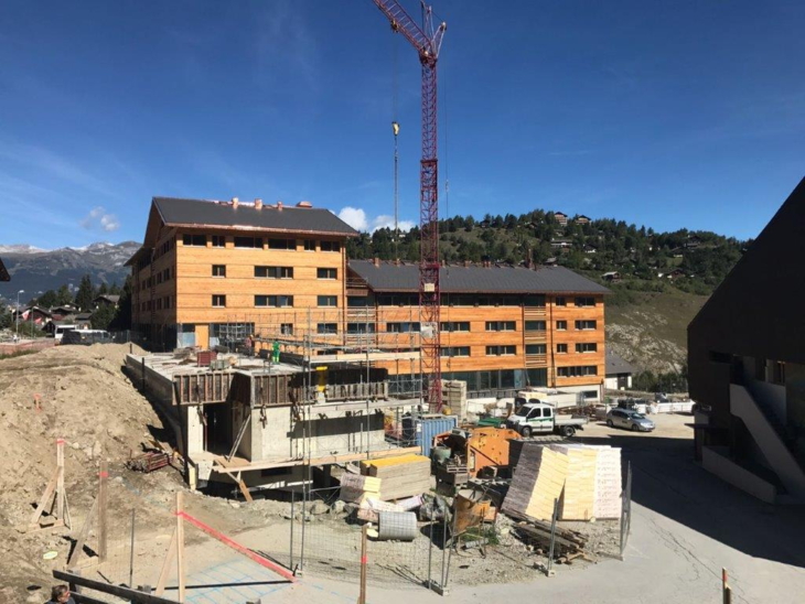 Die Architektur des sechsstöckigen Komplexes wurde auf die bestehenden Häuser in Vercorin angepasst. Das Holz für die Fassade stamme aus der Region und alle Arbeiten wurden von Unternehmen aus der Umgebung ausgeführt, wie Architekt André Meillard sagt.
