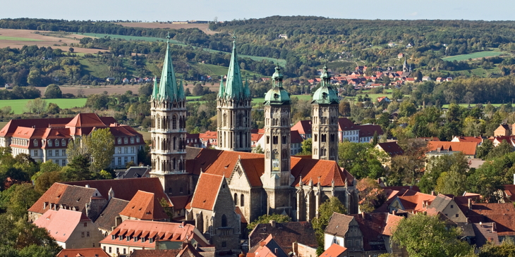 Der Naumburger Dom liegt am Ostrand des Thüringer Beckens im Bundesland Sachsen-Anhalt und wurde ab 1028 über einen längeren Zeitraum erbaut. Die Kirche ist ein sehr gut erhaltenes Zeugnis mittelalterlicher Kunst und Architektur.Das romanische Schiff wird von zwei gothischen Chören flankiert und markiert damit auch den Übergang zweier Stilepochen. Berühmt sind vor allem die lebendig wirkenden Skulpturen des unbekannten «Naumburger Meisters» im westlichen Chor, welche den Einzug von Wissenschaft und Natur in die religiöse Darstellung signalisieren.