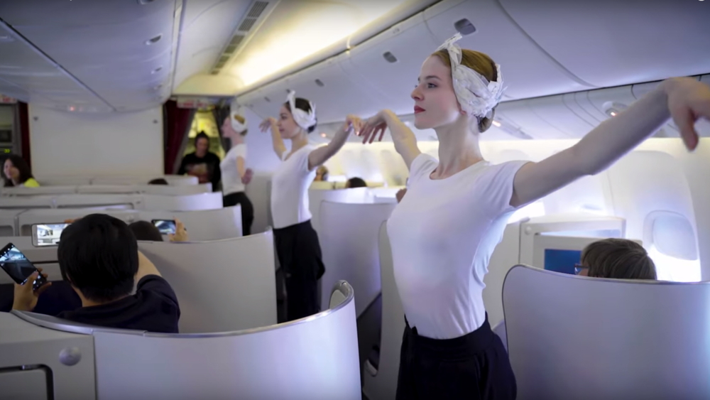 Die Air France Passagiere aller Buchungsklassen kamen kürzlich auf dem Flug von Shanghai nach Paris in den Genuss einer exklusiven Tanzvorstellung. Zehn Tänzer der Pariser Oper führten während des Fluges eine Aufführung in den Gängen auf. Die Choreografie kreierte einer der Tänzer, Yvon Demol, speziell für die aussergewöhnlichen Platzverhältnisse der Flugzeuggänge. Getanzt wurde zur berühmten Musik von Antonio Vivaldis Vier Jahreszeiten und Tschaikowskys Schwanensee.