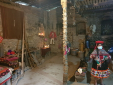 Später besuche ich noch Doña Rosita in Ihrem Haus, die hier wirklich lebt; mitten in einer kleinen Gasse voller Souvenirstände und -verkäufern, öffnet sich eine Holztür und ich trete in ihre kleine Oase ein. Ruhe, das angenehme sehr freundliche und herzliche Lächeln von Doña Rosita, pikobello in lokaler Tracht gekleidet, begrüßt mich. Sie erklärt ihren großen, recht dunklen Wohn-Schlafraum. Neben Bett, Tisch, Stuhl, gibt es einen Altar, einen Platz für (lebende) Meerschweinchen, viel alltägliche Utensilien, Kochstelle. Auch wenn es hier natürlich alles sehr hübsch für Besucher hergerichtet ist, gibt es doch einen guten Eindruck von einem lokalen „Zuhause“. Interessiert schaue ich mir alles an und nach einem kurzen netten und wie hier üblich - auch immer lustigen - Austausch mit der Gastgeberin, verabschiede ich mich.