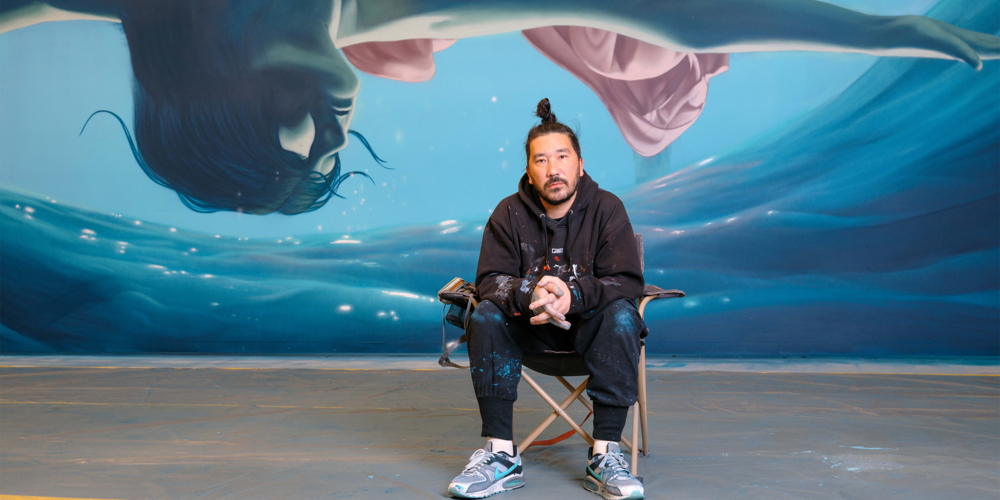 Fabian «BANE» Florins Kunstwerk symbolisiert das Eintauchen in eine neue Welt. Um es so realistisch wie möglich zu gestalten, organisierte er ein Fotoshooting in einem Hallenbad, das ihm als Vorlage diente.