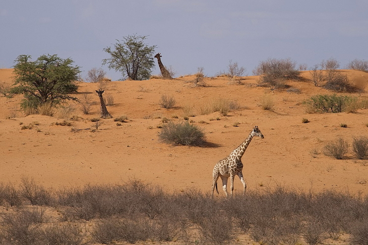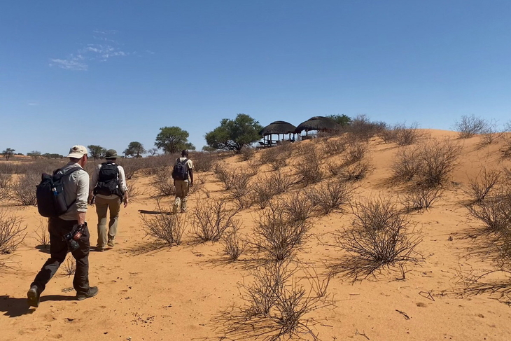 Das macht so eine Tour zu Fuss ja auch so interessant! So bietet etwa die «Kalahari Red Dunes Lodge» bei Kalkrand südlich von Windhoek Wanderungen mit Begleitung an. Dann geht es auf den sogenannten Trans-Kalahari-Walk. Auch wenn der Name Extremeres vermuten lässt, handelt es sich hierbei um eine durchaus komfortable 1,5-Tage-Wanderung durch das 4500-Hektar-Gelände, dessen Grenzen aber zu keinem Zeitpunkt erahnbar sein werden.