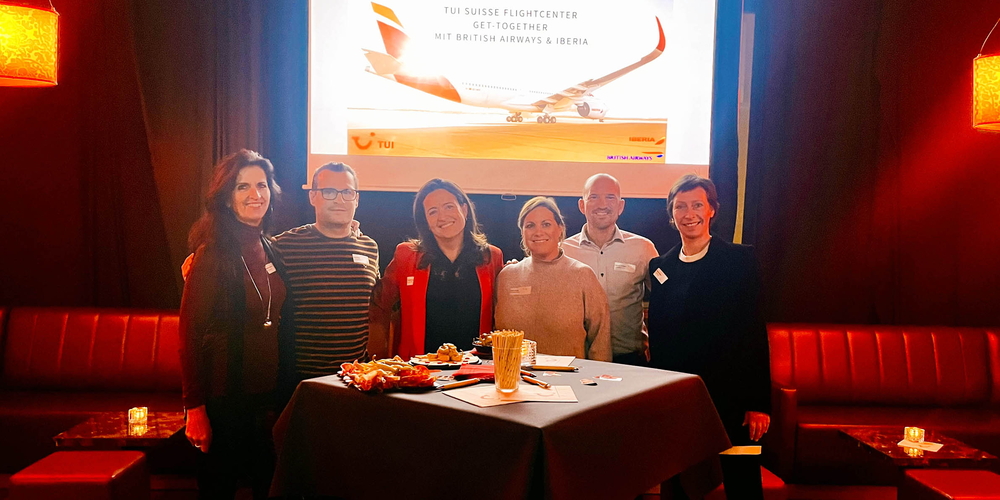Vergangene Woche fand in der Toro Bar Zürich ein Get-Together des TUI Suisse Flightcenter gemeinsam mit British Airways, Iberia und American Airlines statt. Das achtköpfige Flightcenter-Team um Andreas Cossalter und Teamleiter Alan Brusadin sowie Mario Spadola (Manager Global Flight Purchasing TUI) und Evelyne Godino-Fürst (Head of 3rd Party & Agency Service TUI Suisse) hiessen rund 30 Mitarbeiterinnen und -mitarbeiter aus dem Eigen- und Partnervertrieb willkommen.