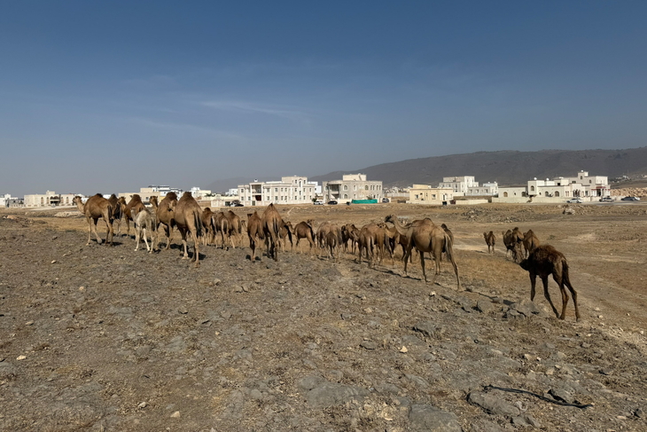 Der Süden des Landes überrascht. Nicht grün zu dieser Jahreszeit, aber eindrücklich auf seine eigene Art. Rund um Salalah prägen Kamele das Landschaftsbild. Sie bewegen sich frei durch die Weite und gehören hier ganz selbstverständlich dazu.