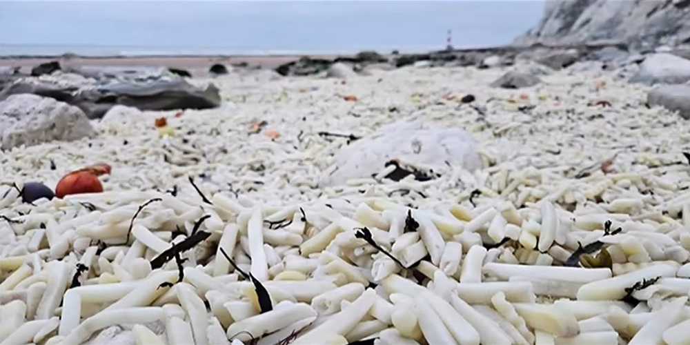 Tonnenweise Pommes und Zwiebeln an Strand gespült